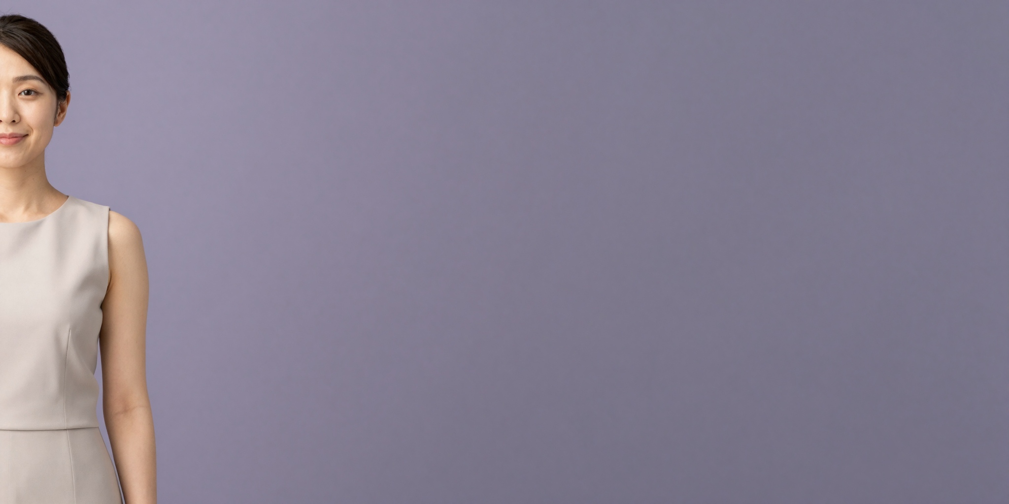 プロフェッショナルでありながらファッショナブルなカジュアルな服装をしたプロフェッショナルな日本人女性が左端にいて、体の一部だけが見えています。残りの領域は、微妙なボケ味の光スポットを備えたきれいな単色の暗から明へのグラデーションであり、テキストに洗練された背景を提供します。テキスト、文字、数字、書き込み、透かしは一切ありません。高画質でフリーのNightStock素材です。商用利用可能・クレジット表記不要。