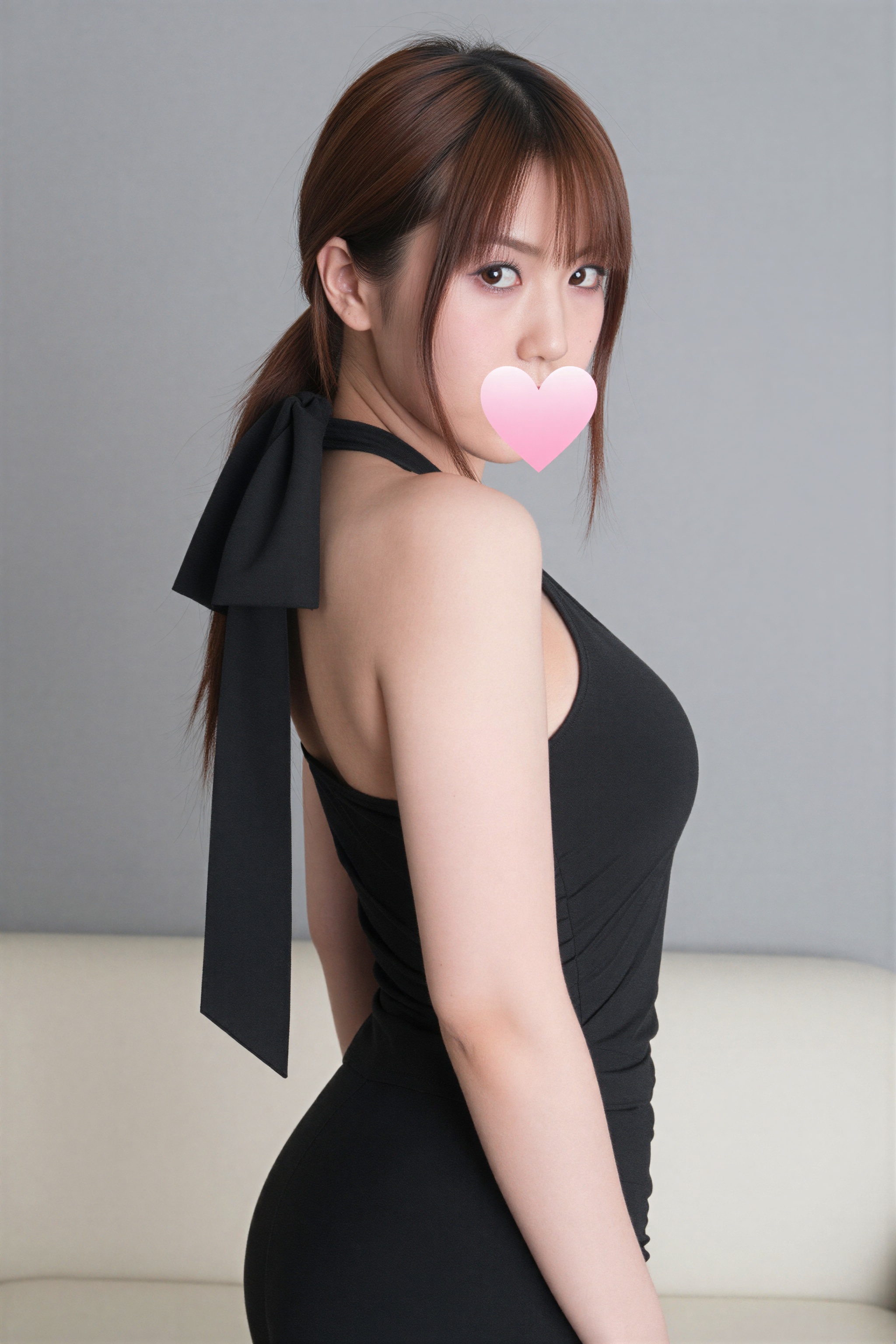 明るい茶色の髪を前髪のある高めのポニーテールにまとめた女性が、フレームの右側に少し頭を置き、視聴者を直接見つめています。彼女の顔は、口の部分を覆うピンクのハート型のグラフィック オーバーレイによって部分的に隠されています。彼女は、背中に左腕の長さまで伸びる大きなリボンのディテールを特徴とする黒いノースリーブのトップを着ています。衣服は体にぴったりとフィットし、滑らかな生地で作られています。。高画質でフリーのNightStock素材です。商用利用可能・クレジット表記不要。