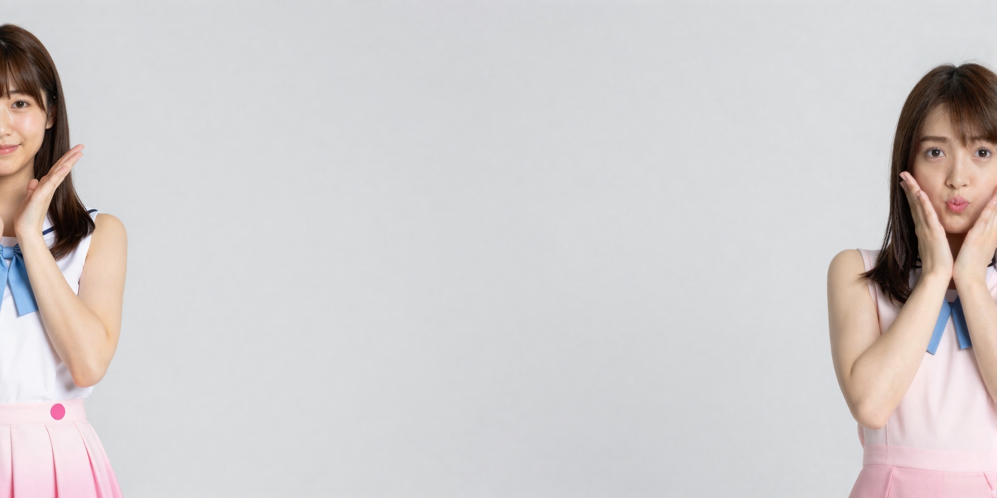 微妙な妖精の粉の輝きを伴う暖かいパステル ピンクのグラデーションで、端で一致するかわいいポーズをとっている 2 人の女の子を示しています。カラフルなアクセントが効いたアイドル風のキュートな衣装に身を包み、顔が一部見えた状態でキュートなエネルギーを発散している。中央には大きなテキストスペースが用意されています。温かみのあるイルミネーションが明るい雰囲気を演出します。テキスト、文字、数字、書き込み、透。。高画質でフリーのNightStock素材です。商用利用可能・クレジット表記不要。
